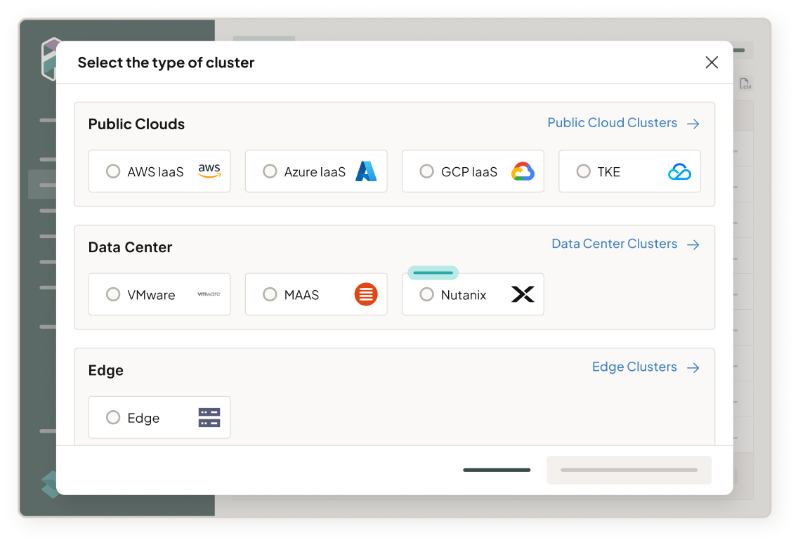 Blueprint the right ingredients for every layer, not just the core infrastructure: from your VM and container workloads to the distro and OS. Palette will build the cluster, and keep it exactly how you want it.