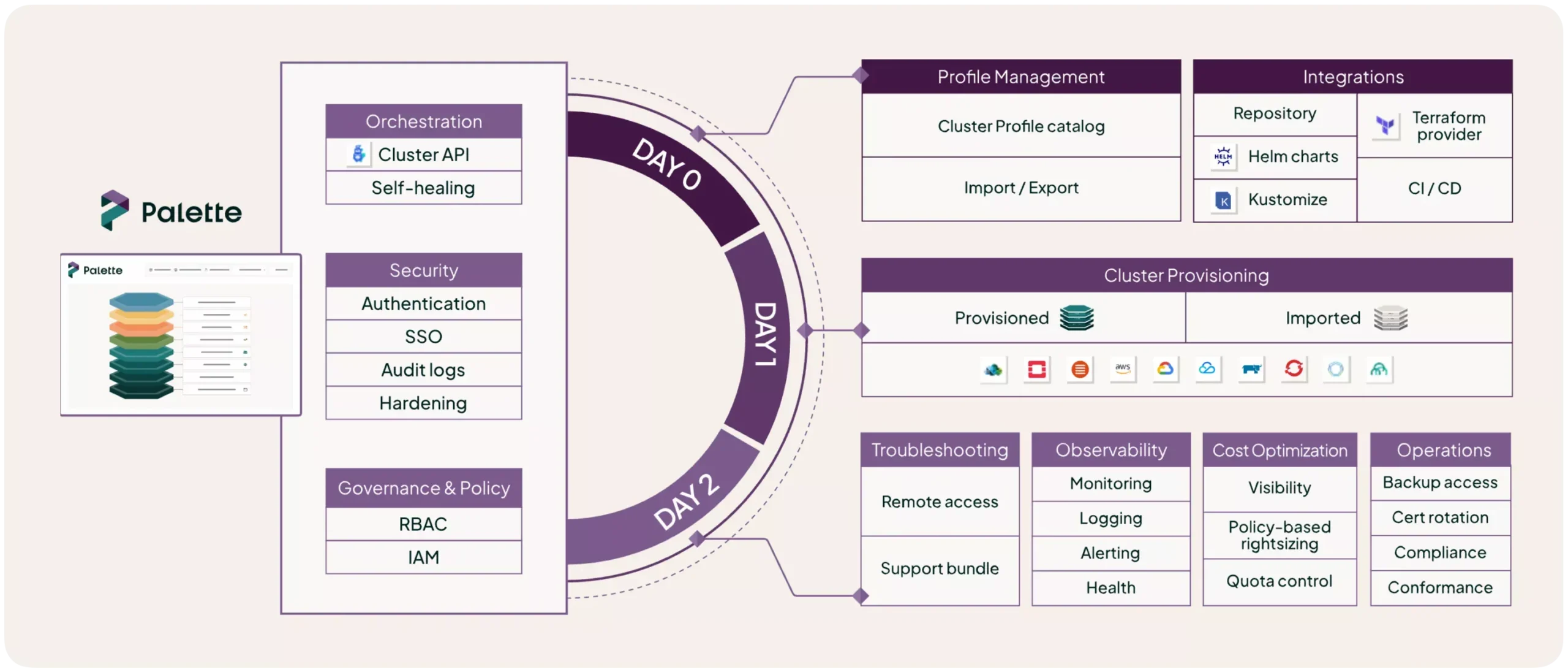 Automate manual Day 2 tasks — from patching to backups, cost control to security scans — freeing up valuable time for innovation.